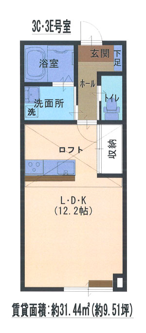 - 間取り /1LDK 58.10u〜60.11u (17.57坪〜18.18坪)