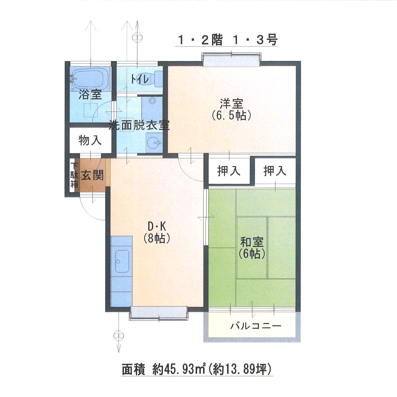 礼金なし物件 名称/ハイツユーアンドアイ 2階 E号室